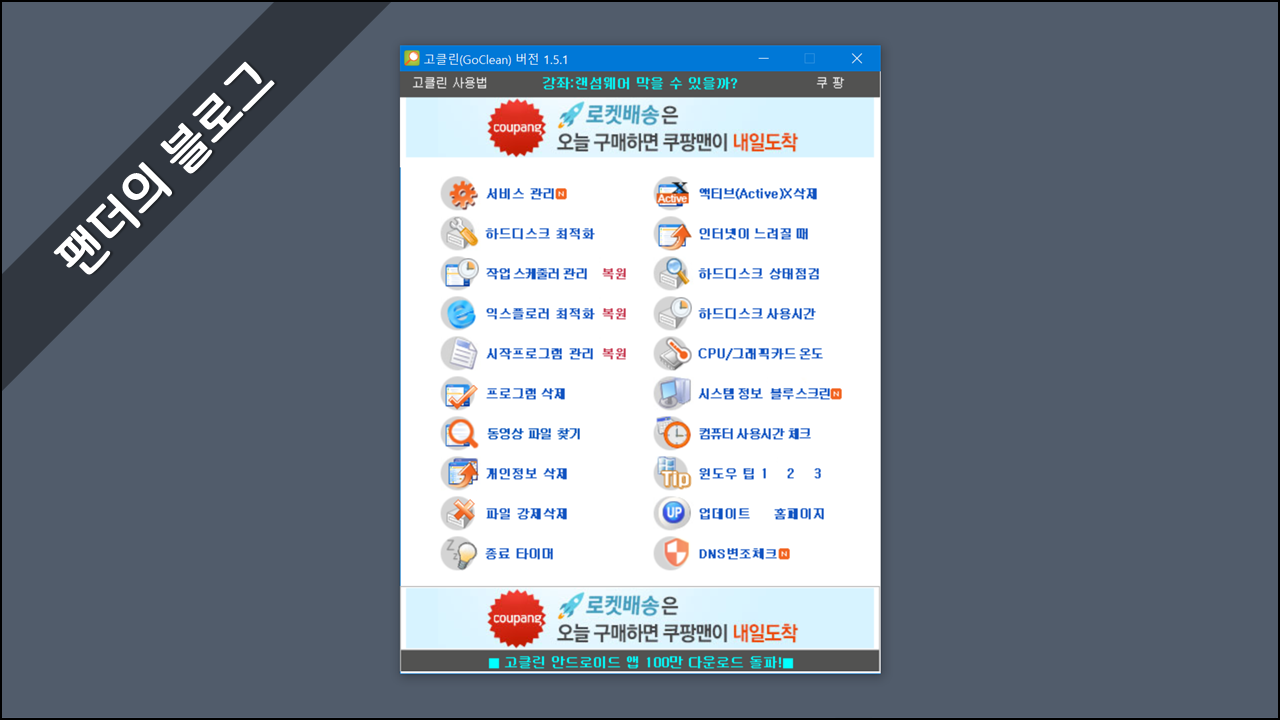 1. 고클린은 컴퓨터 최적화 프로그램으로 컴퓨터 사용시간을 확인할 수 있습니다. 고클린을 실행하여 실행 목록에서 컴퓨터 사용시간 체크를 선택합니다.