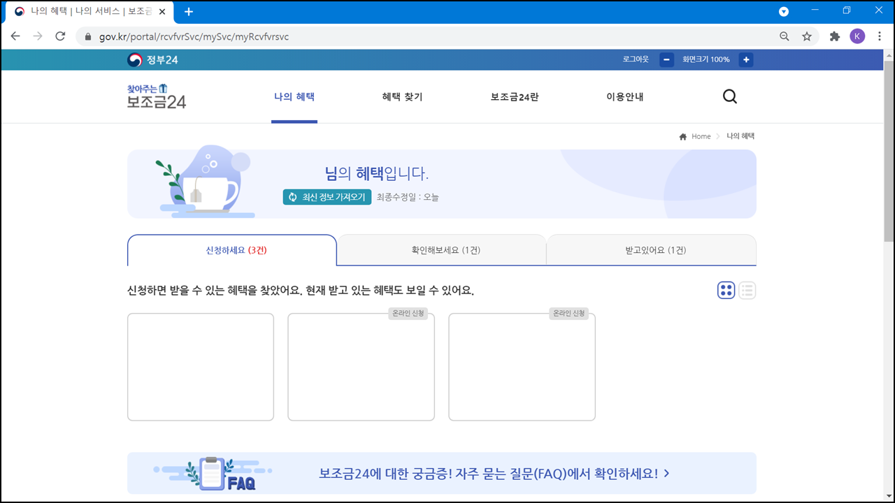 내가 받을 수 있는 정부 지원금 조회하는 방법