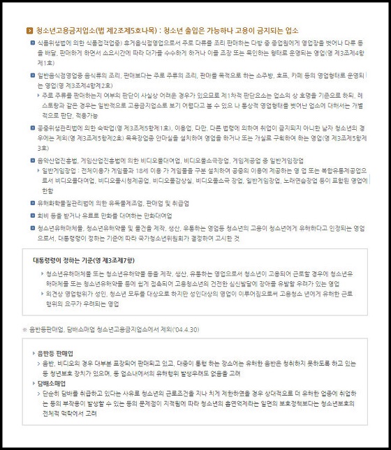 청소년 취업 금지 업소