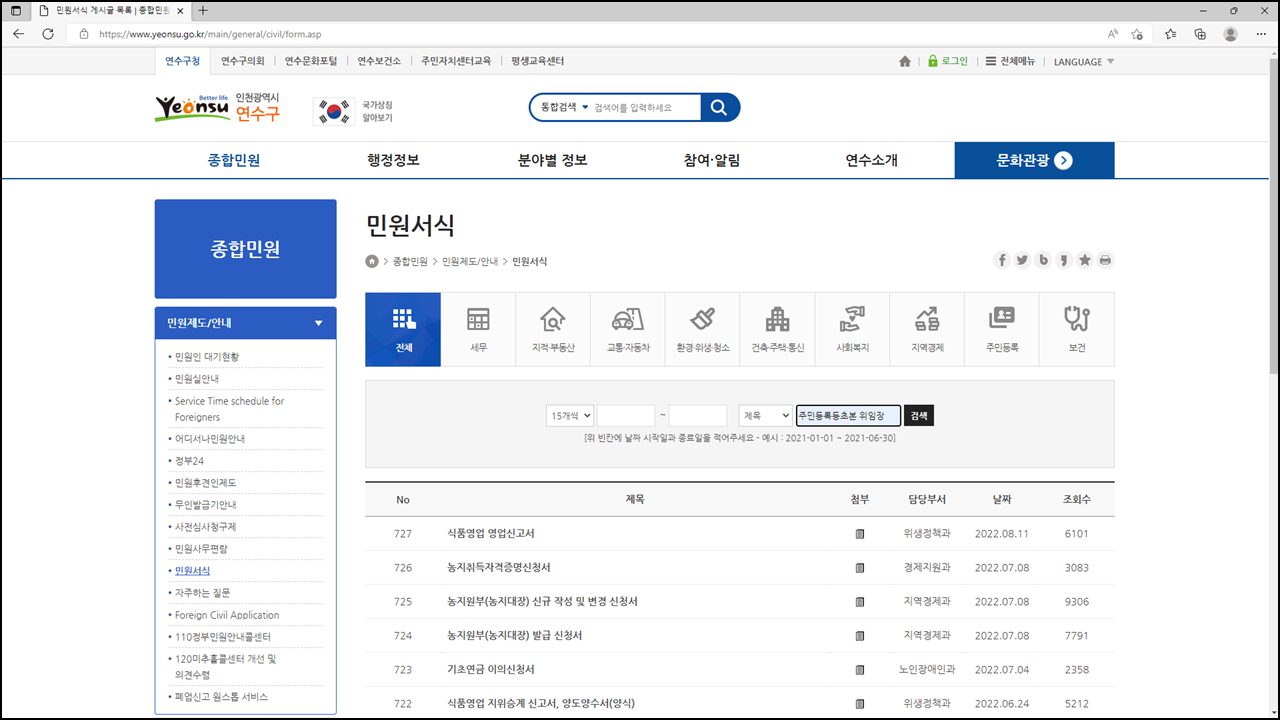 인천연수구청 홈페이지 바로가기 : https://www.yeonsu.go.kr/main/