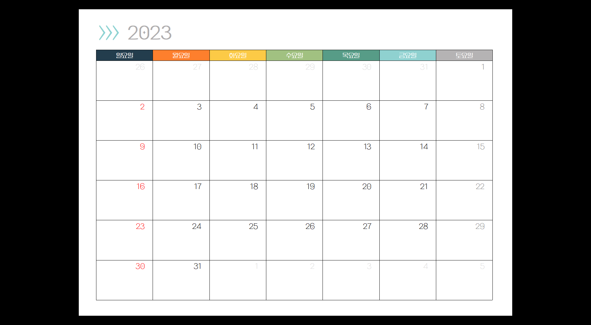 2023년 전체 달력 - 엑셀