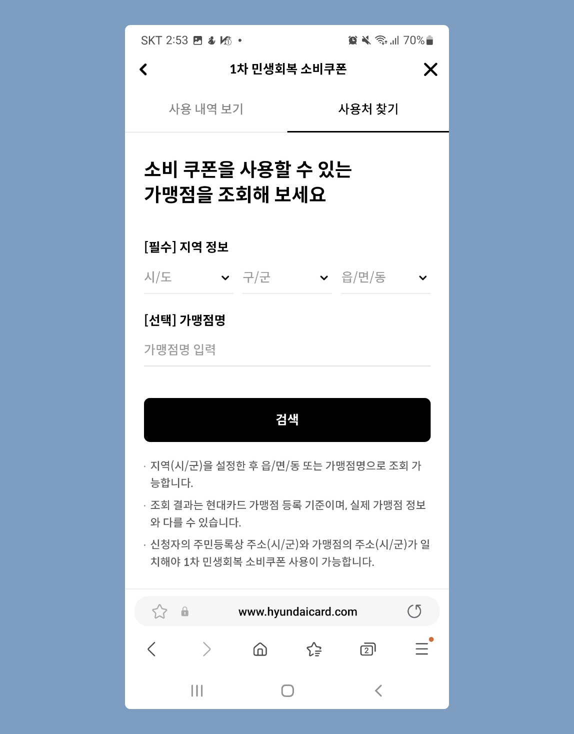 민생회복지원금 가맹점 조회 서비스 : https://www.hyundaicard.com/cpb/gs/CPBGS2005_01.hc